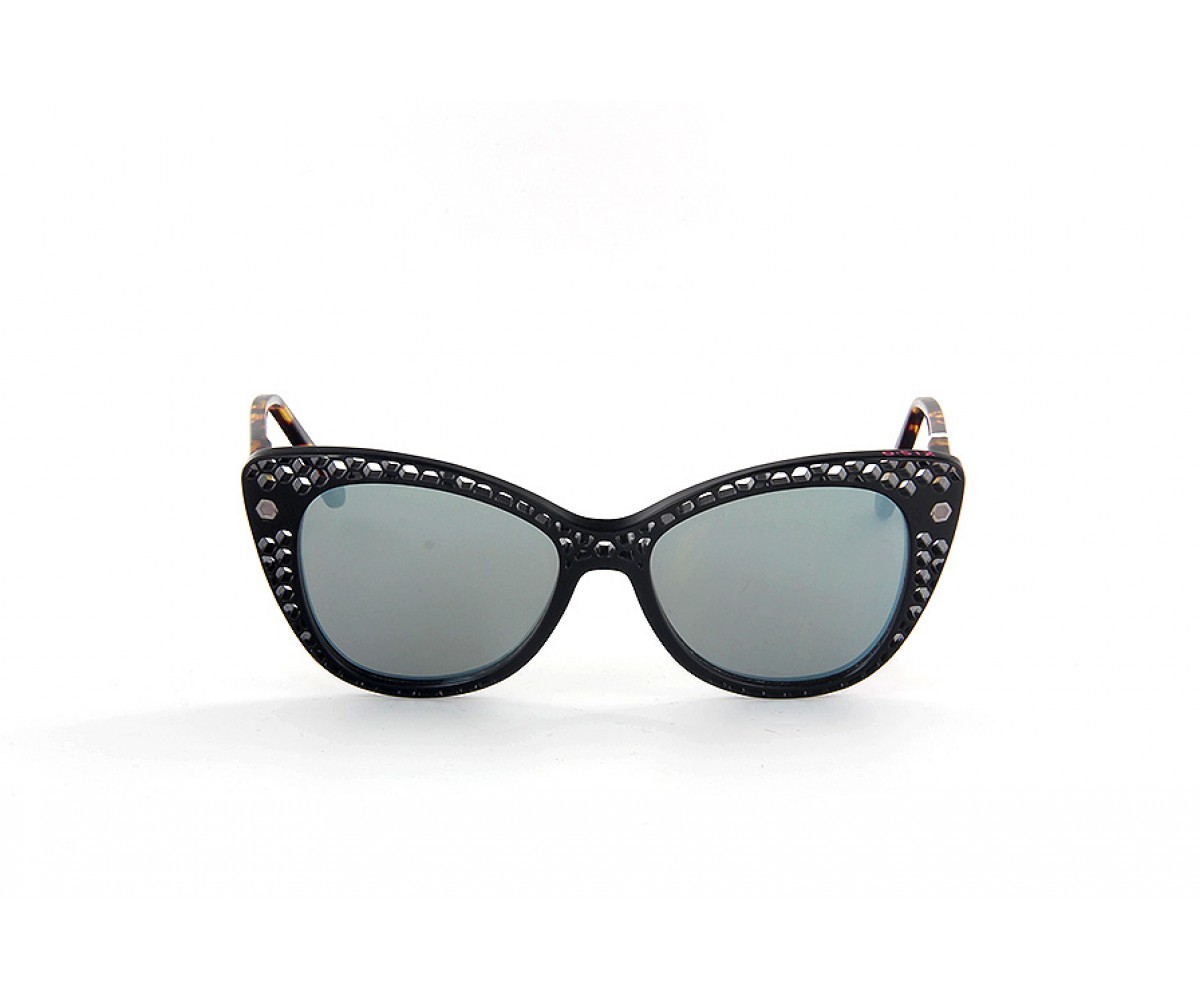 O-SIX 497/001 52.Γυναικείο ηλίου. Κοκάλινος μαύρος σκελετός με καφέ βραχίονες και γαλάζιους καθρέπτη φακούς